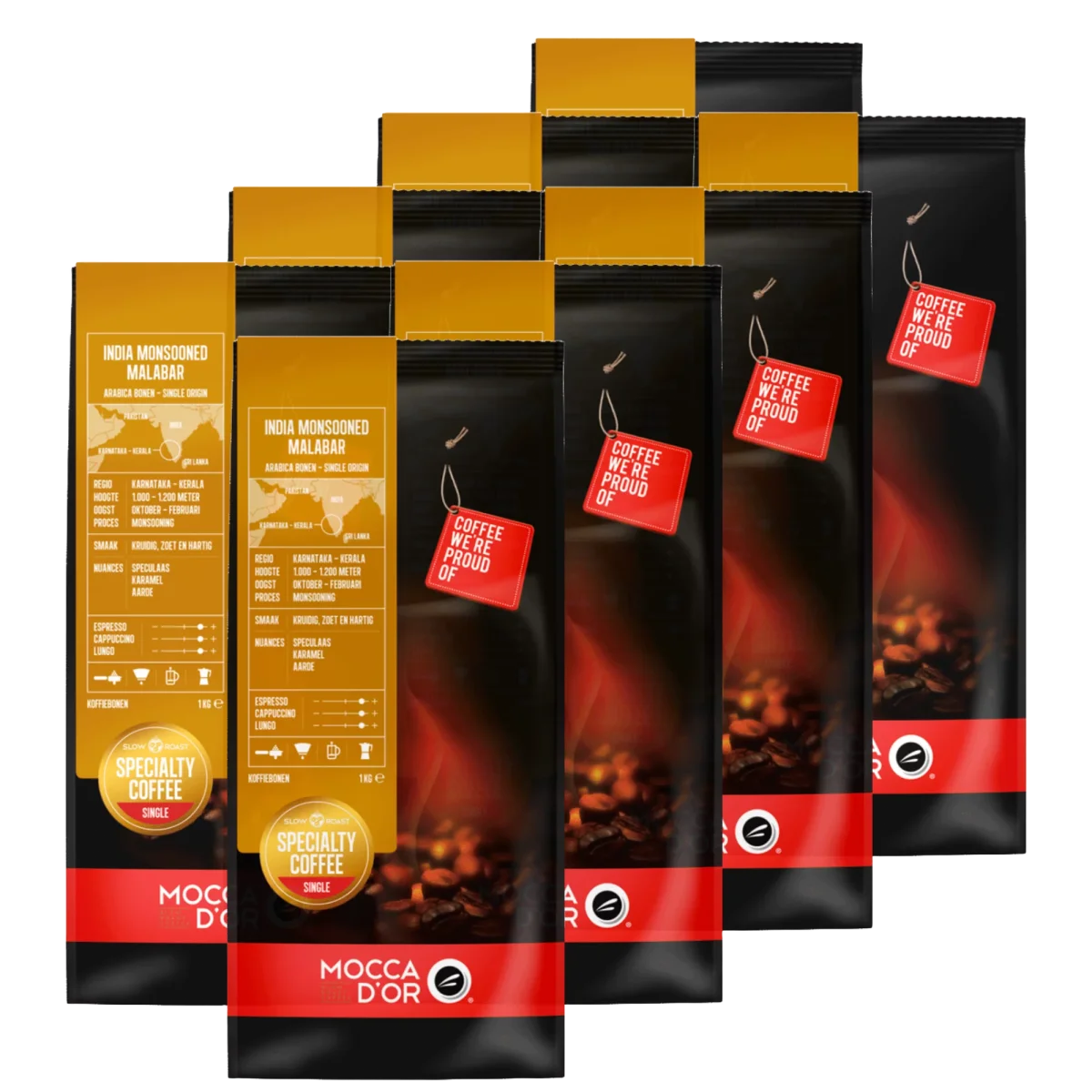 Mocca d’Or India Monsooned Malabar AA is geschikt voor alle koffievarianten. Maar komt het beste tot zijn recht als espresso, filterkoffie of uit een cafetière.