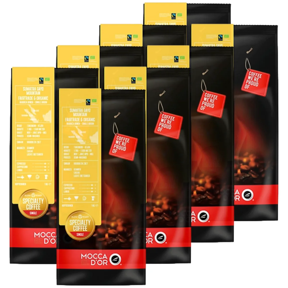 Single Origin houdt in dat de koffiebonen afkomstig zijn uit een bepaalde regio. De Sumatra Gayo Mountain bestaat 100% biologische en Fairtrade Arabica koffiebonen.