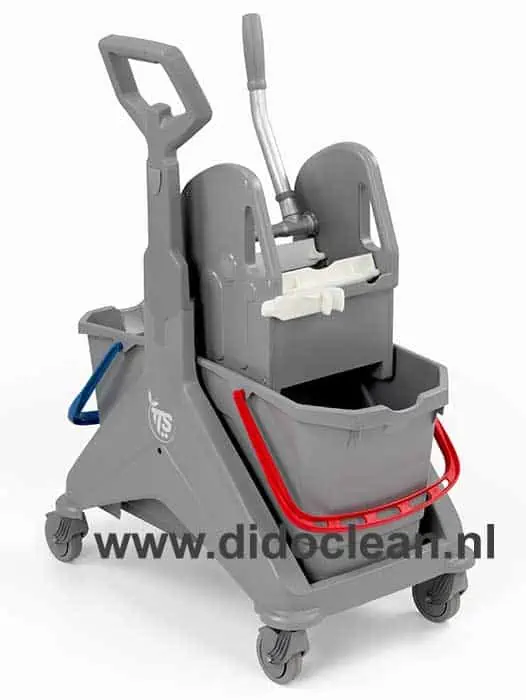 Mopsysteem Mopwagen TTS Nickita voorzien van 2 emmers van 15 liter en een wringpers die geschikt is voor strengenmoppen en vlakmoppen. Het supersterke frame en de degelijke constructie maken dit mopsysteem duurzaam en betrouwbaar. Het hele ontwerp is gebaseerd op een uiterst duurzaam frame gemaakt van gerecycled ABS kunststof dat bestand is tegen scheuren. Het grootste voordeel van dit frame is het feit dat de verf nooit zal roesten of eraf vallen (in vergelijking met stalen frames).