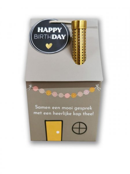 Op zoek naar een origineel cadeau? Dit Thee Huisje cadeau verwent de ontvanger met 50 gram heerlijke thee, een doosje gesprekskaartjes en een thee-infuser in de vorm van een schoorsteen. Zo kun je samen een gezellig gesprek voeren over van alles, het leven, of gewoon over jarig zijn, terwijl je geniet van een heerlijke kop thee!