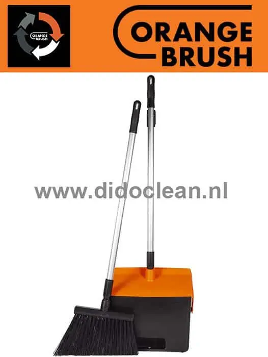OrangeBrush Veegset met steel met een groot veegblik van 7 liter. Het stofblik is stof en waterdicht. Bij het optillen sluit het blik automatisch.