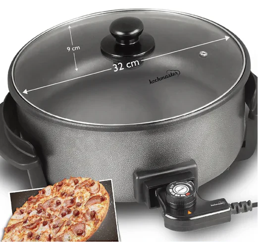 De Party Pan is jouw ultieme keukenhulp voor elke gelegenheid! Deze veelzijdige elektrische hapjespan heeft een diameter van 32 cm en een diepte van 9 cm, waardoor je eenvoudig grote hoeveelheden eten kunt bereiden. Dankzij de glazen deksel hou je alles in de gaten terwijl je kookt.