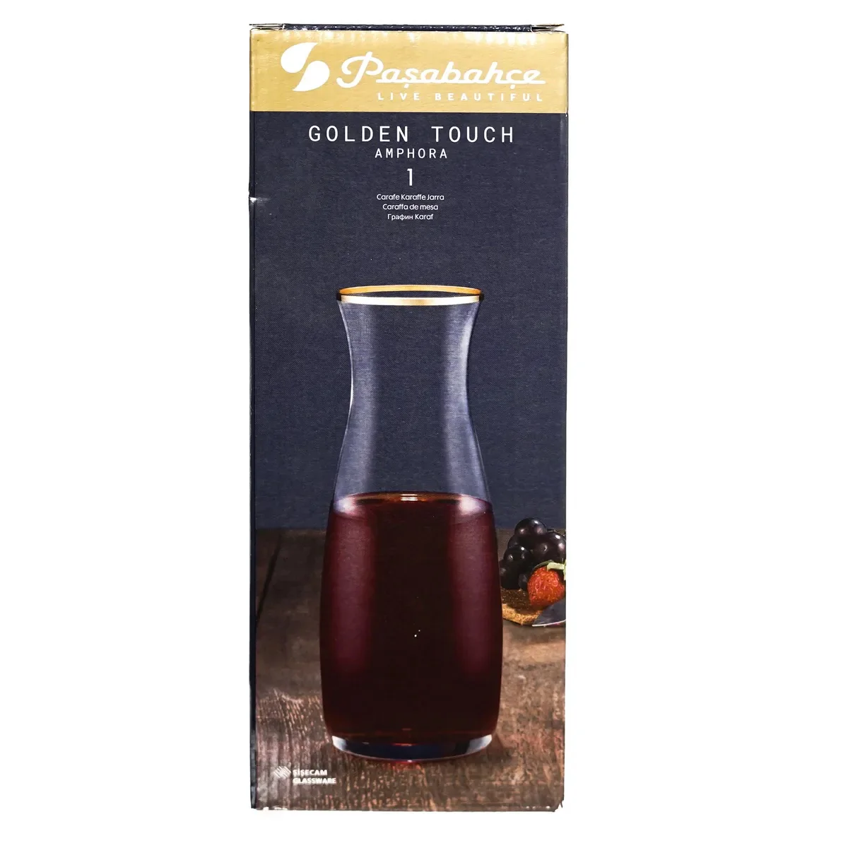 Voeg een vleugje luxe toe aan je tafel met de Pasabahce AMPHORA karaf. Met zijn stijlvolle gouden rand en elegante vormgeving is deze karaf perfect voor het serveren van water, wijn, sap of andere dranken.