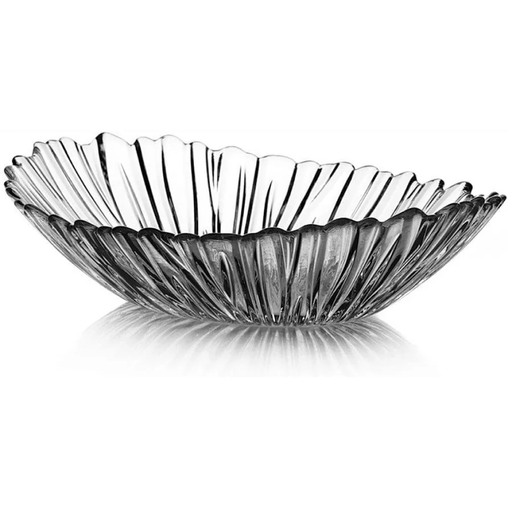 Deze elegante ovale Aurora schaal van Pasabahce combineert tijdloos design met de helderheid van hoogwaardig transparant glas. Dankzij de diepe vorm en de verfijnde golvende structuur krijgt elke tafelsetting een luxe uitstraling, terwijl de royale afmetingen van 33 x 26,4 cm voldoende ruimte bieden voor salades, fruit, snacks of desserts. Het kristalheldere glas laat kleuren prachtig uitkomen en maakt de schaal geschikt voor zowel dagelijks gebruik als speciale gelegenheden. Door de stevige kwaliteit blijft de schaal langdurig mooi en kan hij moeiteloos worden gecombineerd met andere glazen serveeraccessoires voor een stijlvolle presentatie bij iedere maaltijd.