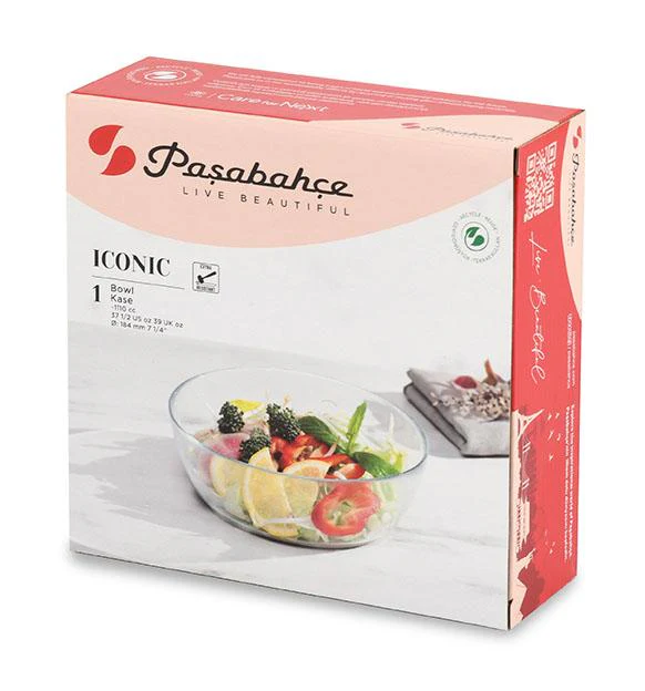 De Pasabahce ICONIC glazen schaal combineert elegantie en veelzijdigheid. Ideaal voor het serveren van gerechten, salades, snacks en desserts, en een stijlvolle toevoeging aan je tafel.