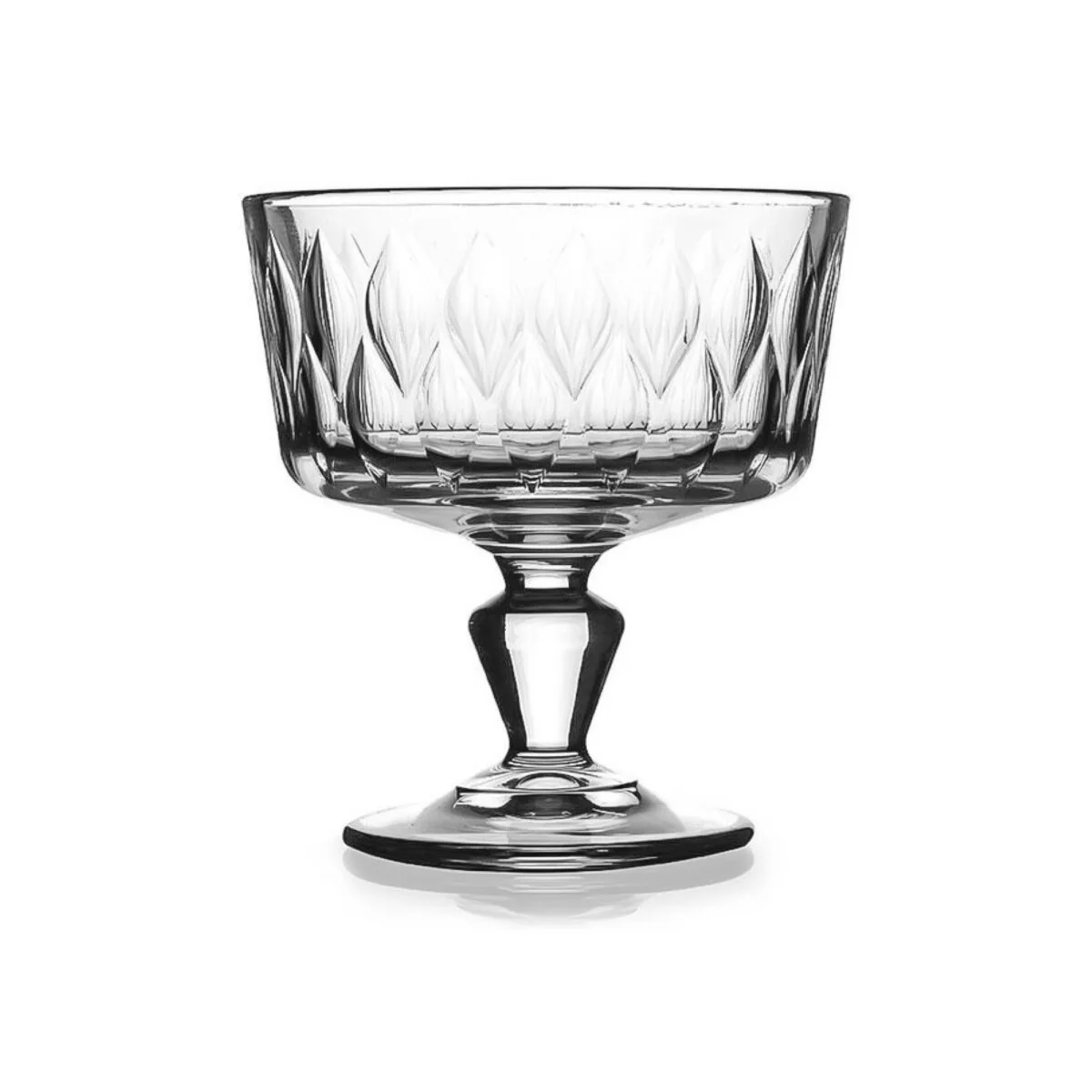 De Pasabahce LEAFY dessertschalen combineren stijl en veelzijdigheid, perfect voor het serveren van desserts, ijs, fruit en andere lekkernijen. Dankzij het elegante ontwerp op poot en de hoogwaardige glaskwaliteit geven deze schalen een luxueuze uitstraling aan elke tafel.