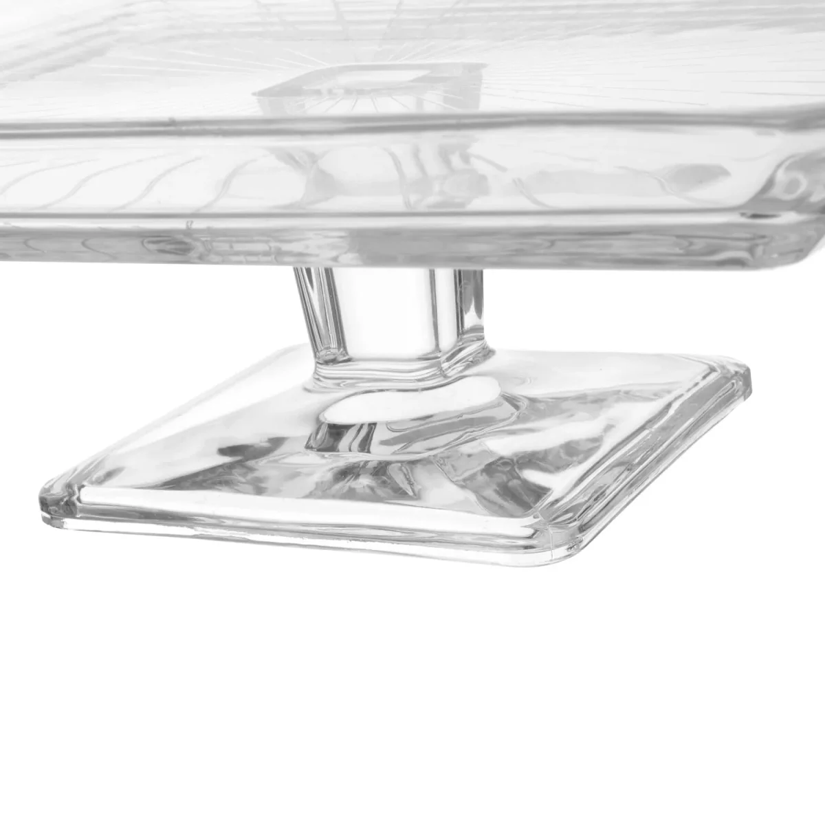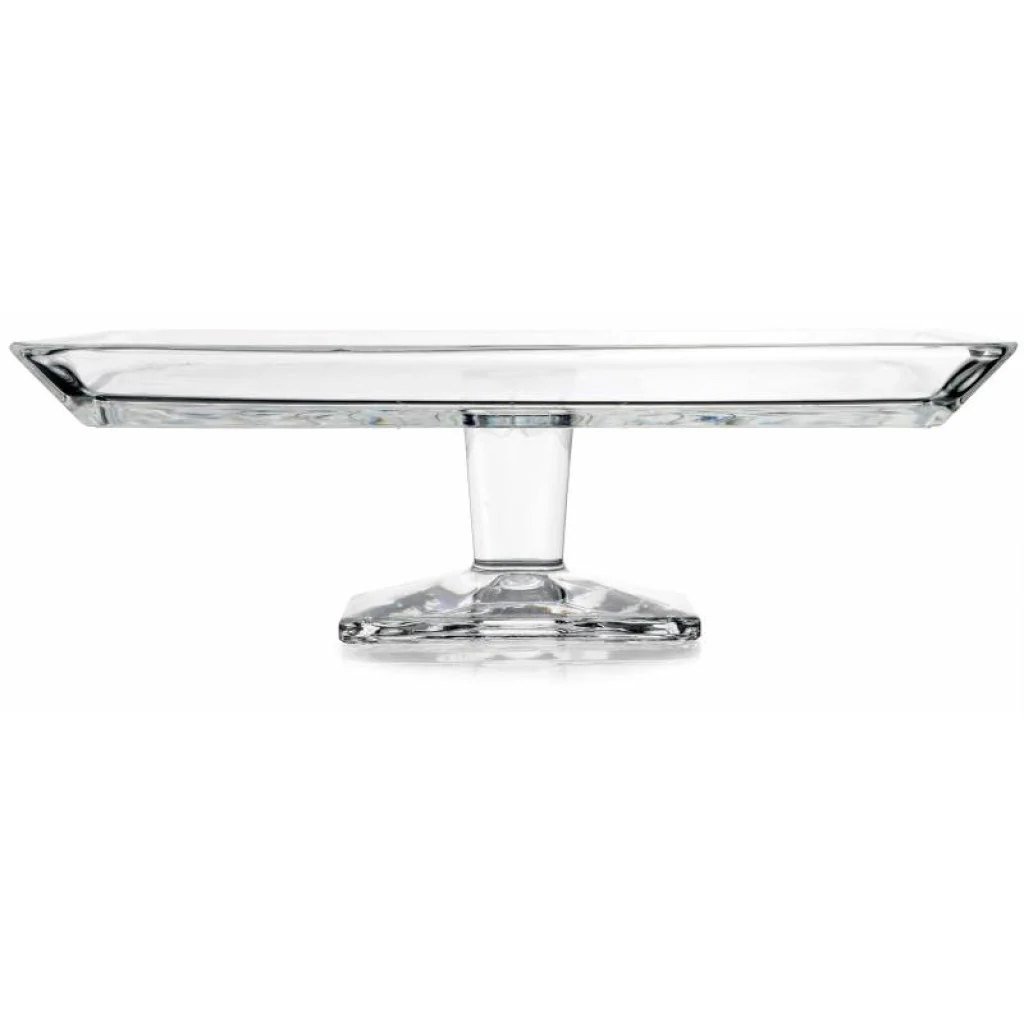 De Pasabahce Madlen serveerschaal is een elegante vierkante glazen schaal op voet, ideaal voor het serveren van taarten, gebak, hapjes of desserts. Met een afmeting van 23,8 x 23,8 cm en een hoogte van 7,8 cm biedt deze serveerschaal voldoende ruimte om je creaties stijlvol te presenteren.