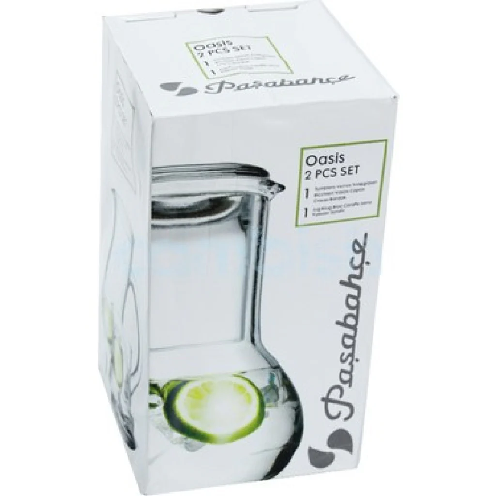 Met deze Pasabahce Oasis kan en glas heb je altijd een frisse slok water bij de hand – hygiënisch, compact en elegant in elk interieur.