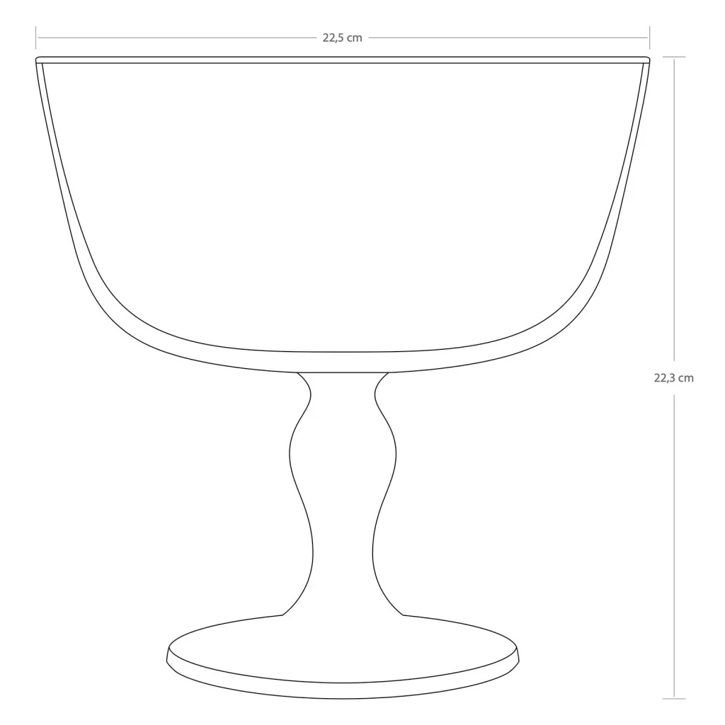 De serveerschaal heeft een diameter van 22 cm en een hoogte van 22 cm, wat zorgt voor voldoende ruimte om je creaties op een verfijnde manier te presenteren. Dankzij het stevige glazen voetstuk staat de schaal stabiel op tafel en is hij ideaal voor zowel dagelijks gebruik als speciale gelegenheden.