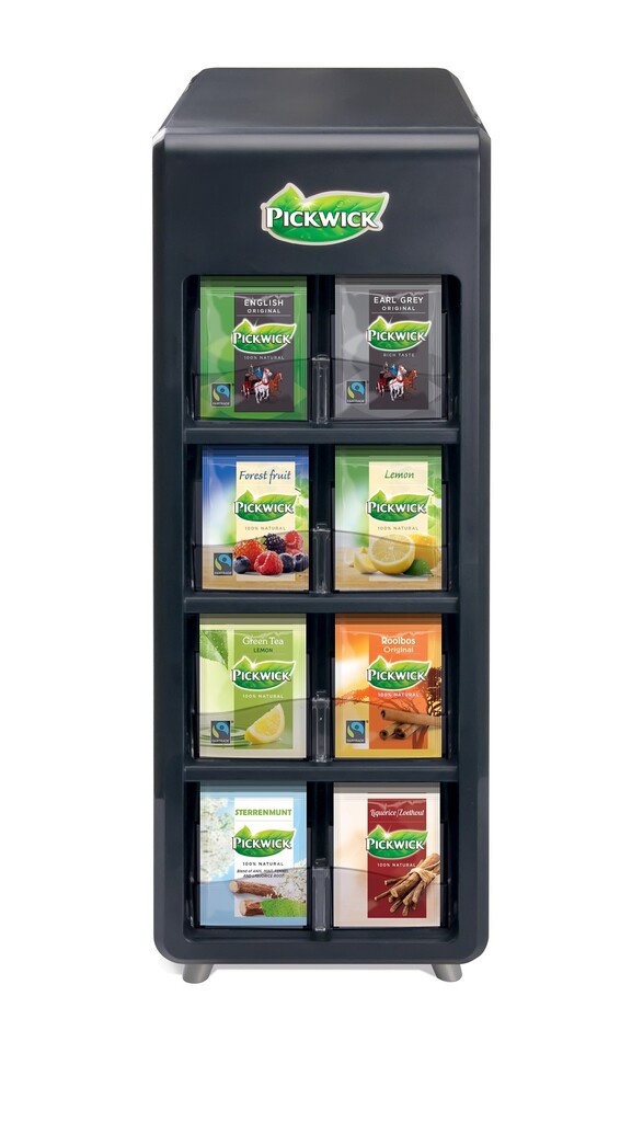 Pickwick Theedispenser, zwart, 8-vaks, gevuld