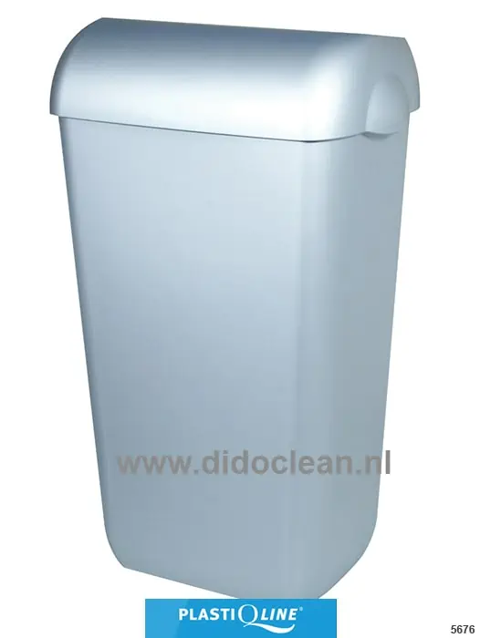 PlastiQline Afvalbak RVS-look 43L open inworp vrijstaand. Ook geschikt voor wandmontage d.m.v. bijgeleverde ophangbevestiging. Met semi-open deksel. De deksel is eenvoudig van de onderbak af te halen voor optimale zakverwisseling.
