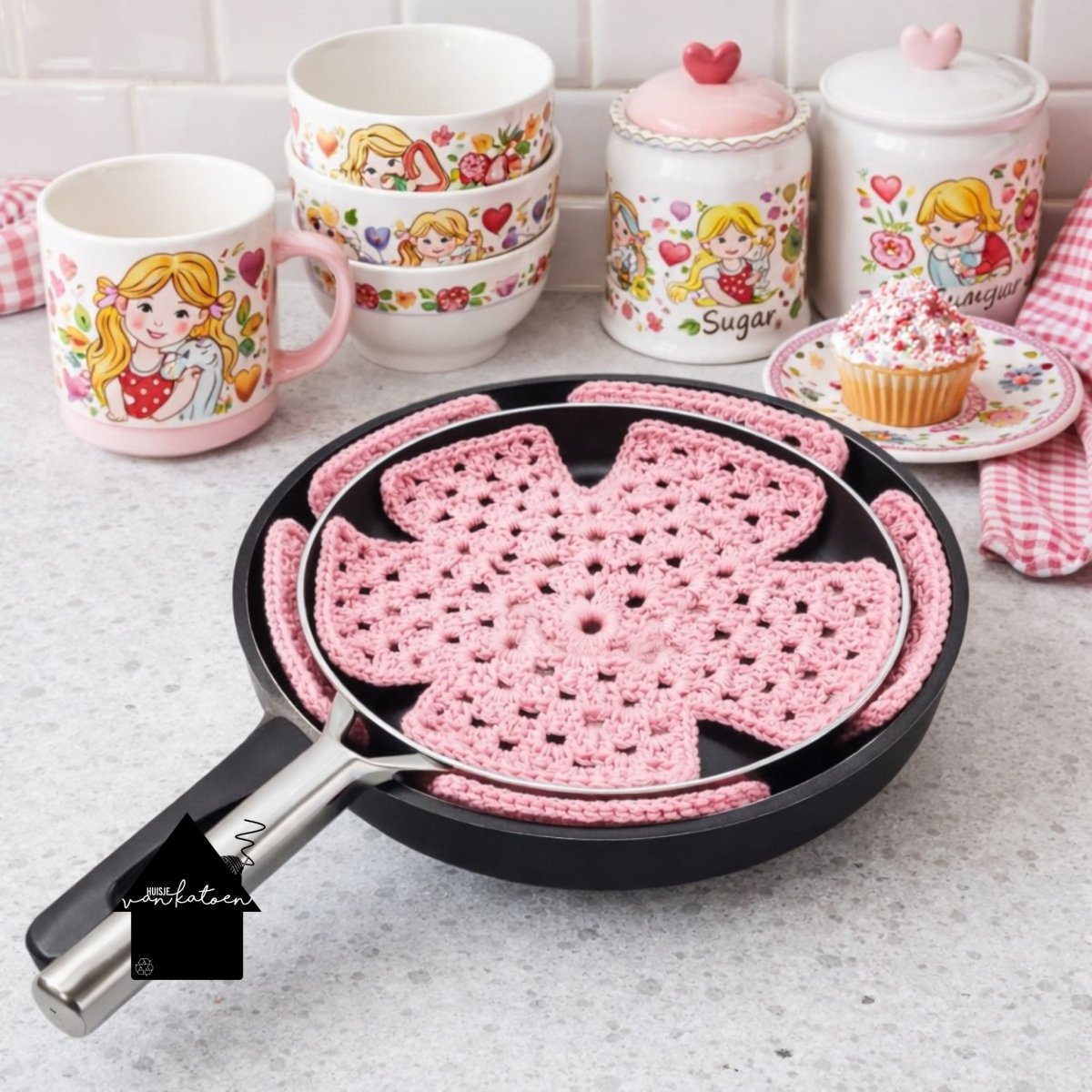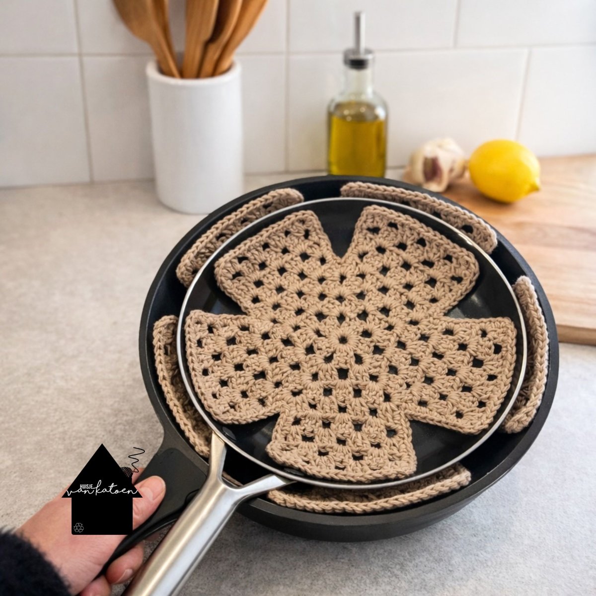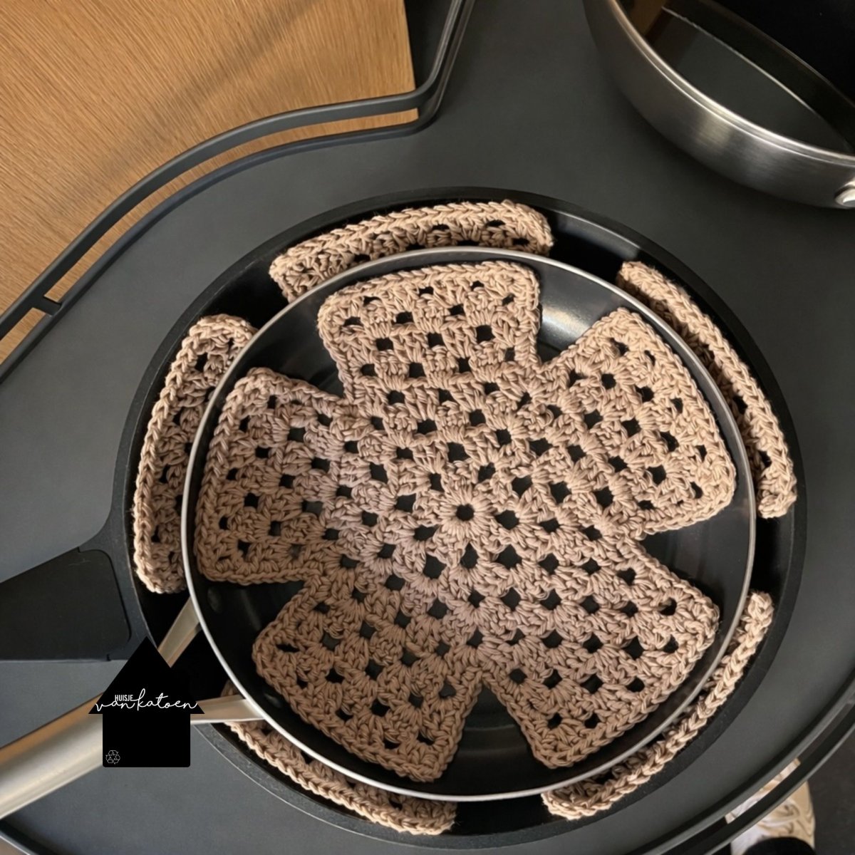 Digitaal patroon (de link naar het patroon komt in je orderbevestiging) Patroon voor een set van 3 pannenbeschermers