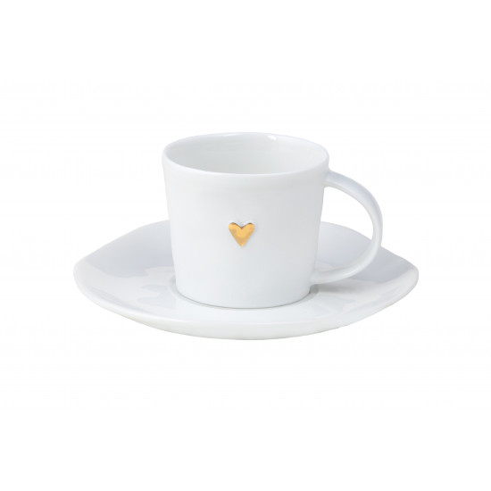 Prachtige witte kop en schotel, wit, gedeeltelijk geglazuurd, met gouden hart.
