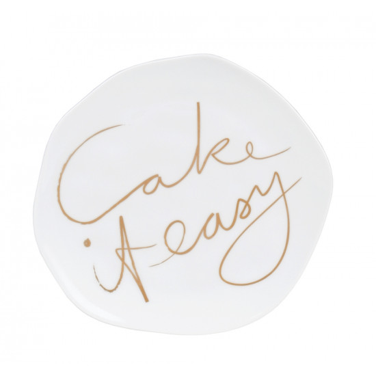 Uit de Mix&Match collectie prachtig wit gebaksbordje, wit met gouden letters Cake it easy
