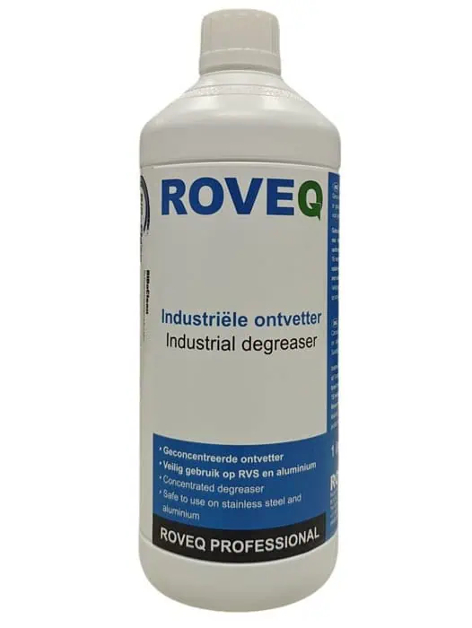 ROVEQ Industriële Ontvetter 1L is een ware krachtpatser voor alle sterk vervuilde oppervlakken. Krijgt u het met een ander middel niet meer schoon, dan is ROVEQ Industriële Ontvetter de oplossing! Wat deze ontvetter uniek maakt is dat er geen oplosmiddelen in zitten en daardoor veilig gebruikt kan worden op tal van oppervlakken, waaronder veel metalen zoals RVS en aluminium, veel kunststoffen, goede kwaliteit verf, glas en plexiglas. Toch is deze ontvetter extreem krachtig en behoord zeker thuis in het rijtje kwalitatief krachtige ontvetters. Niet voor niets dat deze ontvetter veel gebruikt wordt in de horeca om keukens vetvrij te maken en door garagebedrijven voor het ontvetten van onderdelen of het verwijderen van vet- en olievlekken van de vloer.