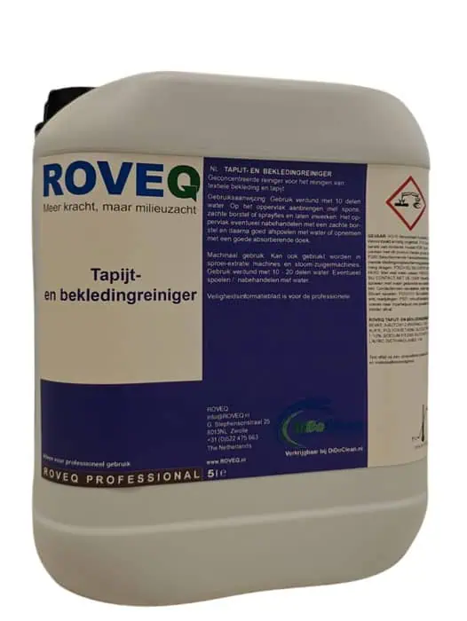 ROVEQ Professionele Tapijtreiniger Bekledingreiniger 5 liter kan gebruikt worden bij diverse reinigingstechnieken voor tapijt- en bekleding.