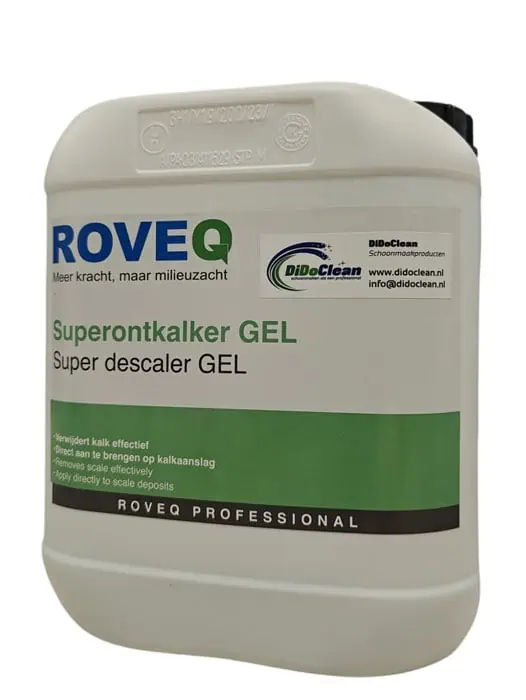 ROVEQ Superontkalker gel 5 liter verwijdert veilig en effectief kalk en urinesteen. Door de gel blijft de Superontkalker makkelijker hechten op moeilijke plaatsen zoals onder de rand van de toiletpot of urinoir.