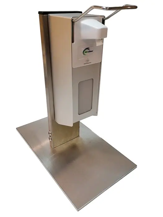 De DiDoClean Desinfectiedispenser Spraydispenser 500ml is een degelijke dispenser met aluminium behuizing. Deze dispenser heeft een bedieningsbeugel die gemakkelijker met de elleboog kan worden bediend en is dus prima toepasbaar op plaatsen waar een hoge mate van hygiëne belangrijk is. DiDoClean Desinfectiedispenser Spraydispenser 500ml is uitgerust met een spraykop, waardoor hij vloeibare producten direct goed over de handen verdeeld. Wordt standaard geleverd met navulfles en een aluminium afdekplaat met slot en bijgeleverde sleutel voor de vulling.