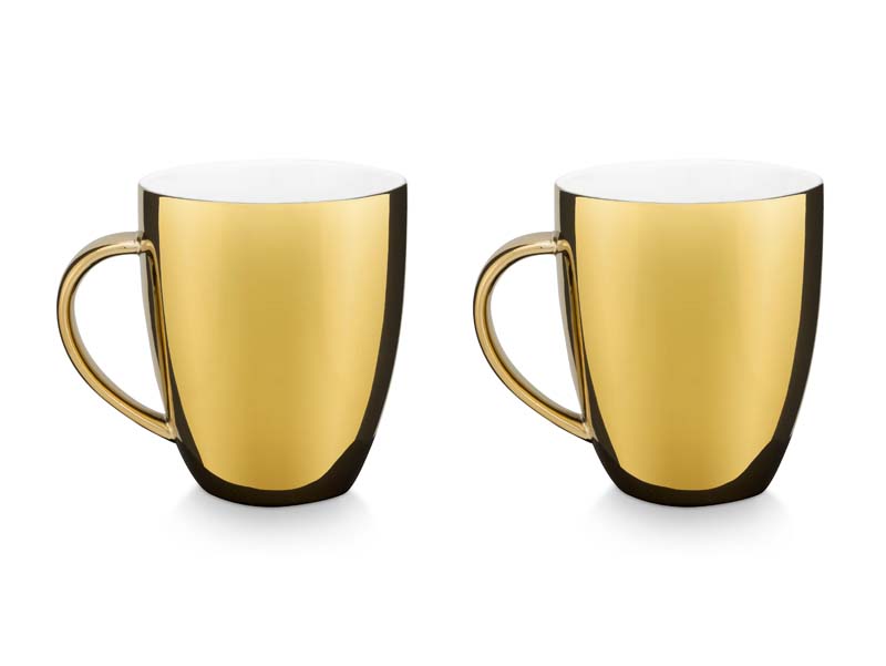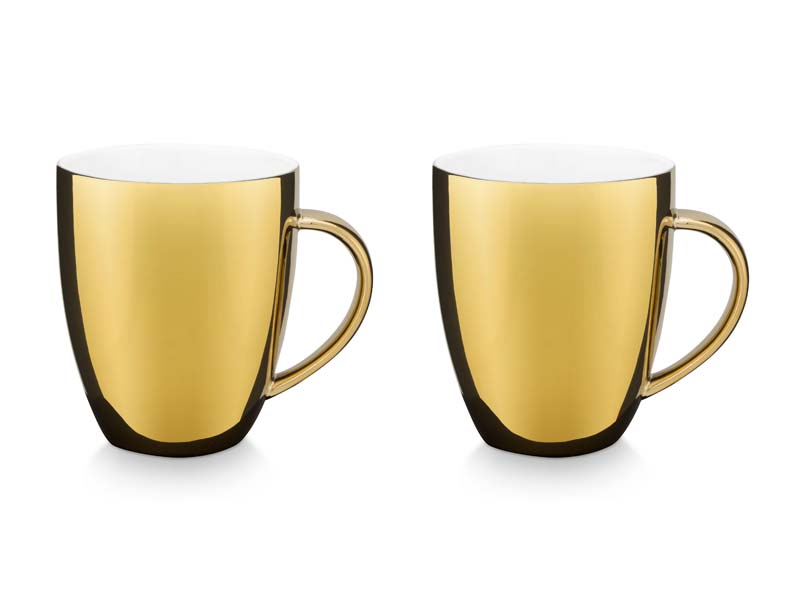Set van 2 prachtige gouden mokken van het merk VTwonen. De porseleinen mokken hebben een inhoud van 250 ml, geschikt voor een grote kop koffie of thee of een heerlijke cappuccino. Naast dat ze functioneel zijn, staan ze ook prachtig in je interieur.