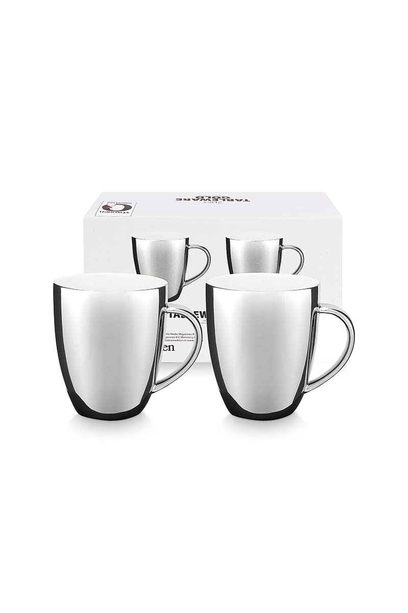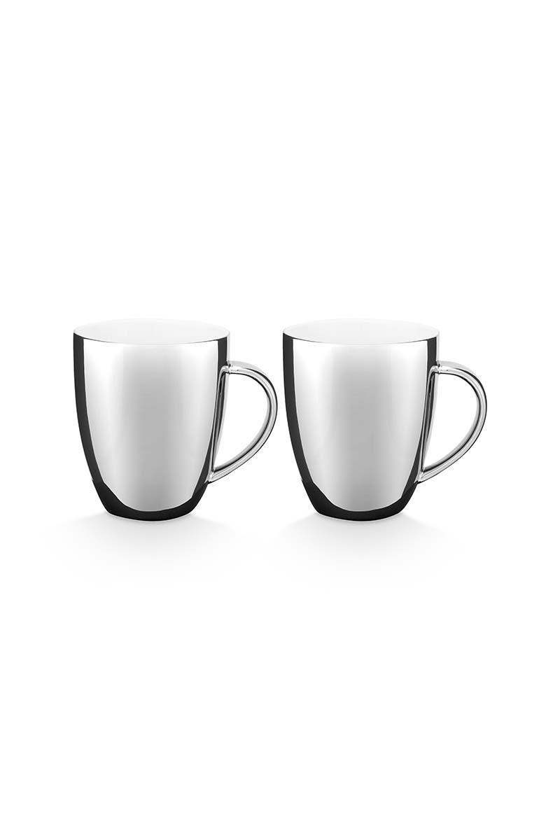 Set van 2 prachtige zilveren mokken van het merk VTwonen. De porseleinen mokken hebben een inhoud van 250 ml, geschikt voor een grote kop koffie of thee of een heerlijke cappuccino. Naast dat ze functioneel zijn, staan ze ook prachtig in je interieur.