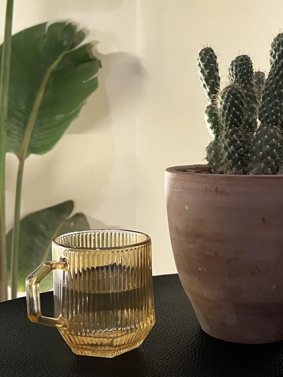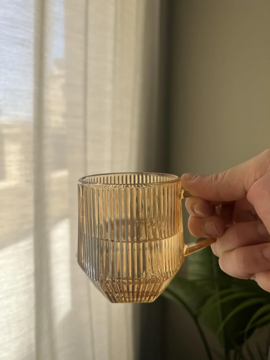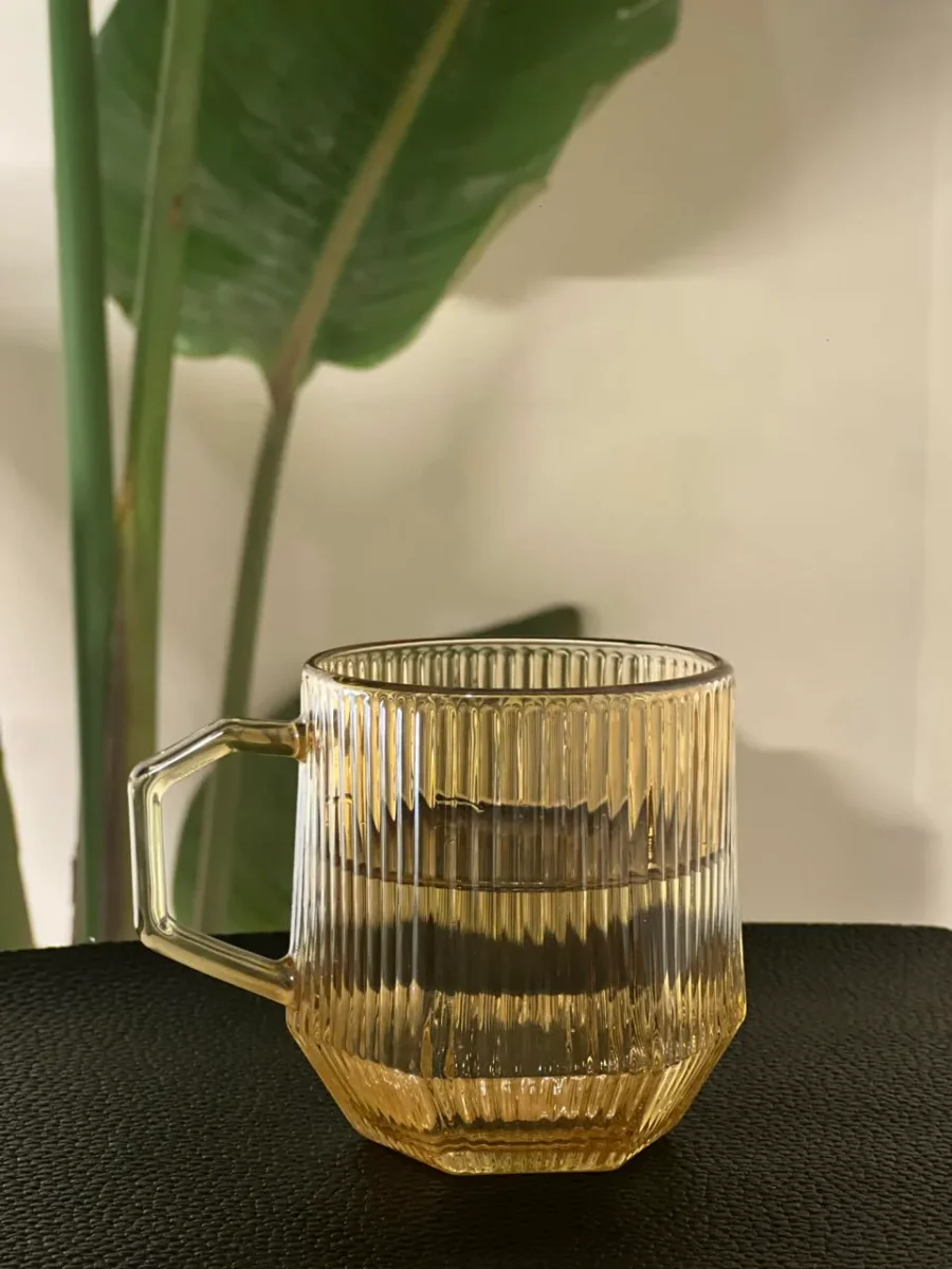 Deze set van 6 ribbel glazen met handvat combineert stijlvol design met praktisch gebruiksgemak. Het geribbelde glaswerk zorgt voor een luxe en trendy uitstraling, terwijl de warme amberkleur direct sfeer toevoegt aan je tafel. Perfect voor zowel warme dranken zoals thee, koffie of cappuccino, als voor koude dranken zoals fris, water of cocktails.