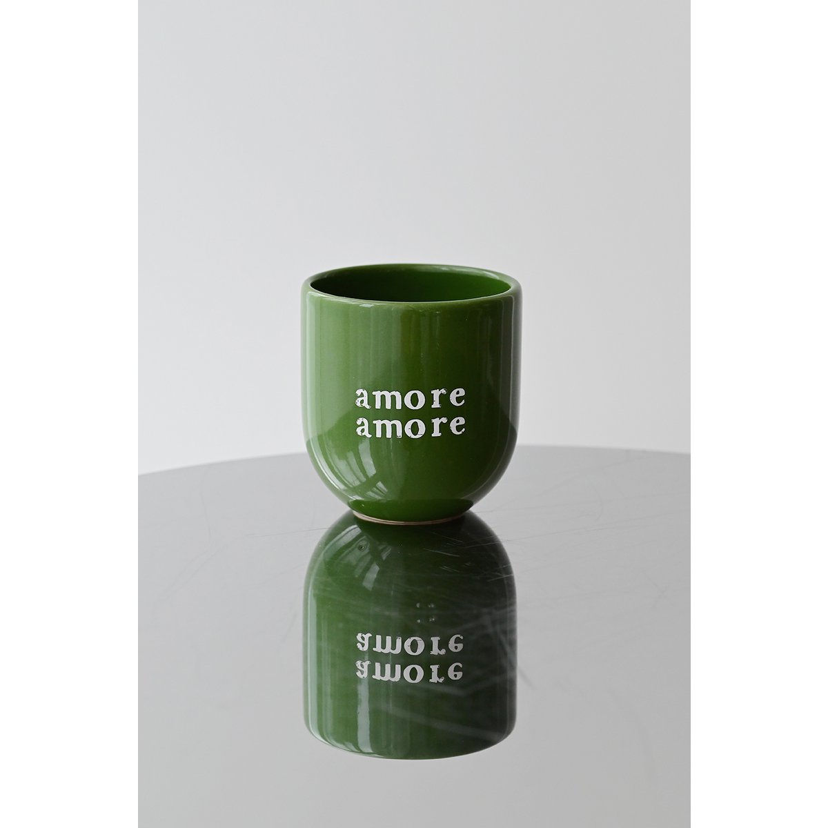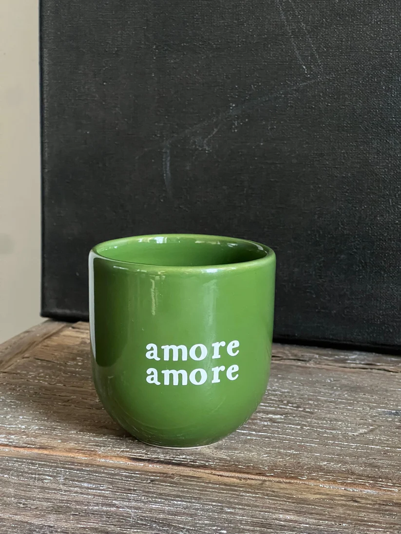 Keramiek glanzende mok, met tekst Amore Amore.