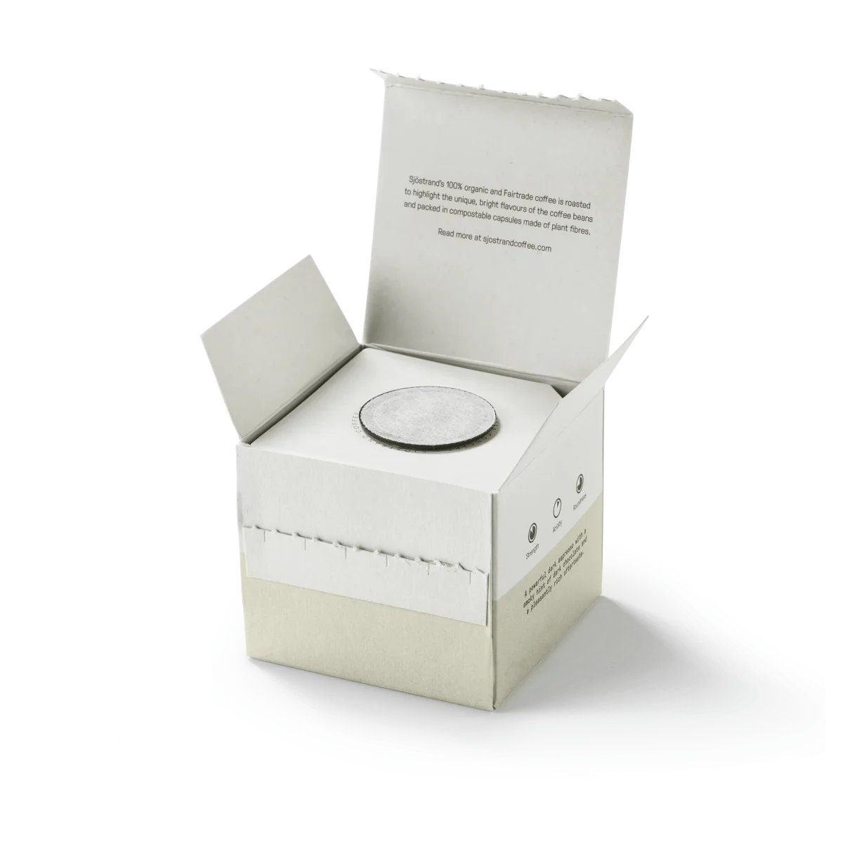 Bij Sjöstrand geloven we dat je met een gerust hart van goede koffie moet genieten. Daarom bieden onze 100% plantaardige, composteerbare capsules een premium ervaring en zijn ze goed voor het milieu. Ze zijn gemaakt van hernieuwbaar PLA-bioplastic, waardoor ze minder energie verbruiken, fossiele brandstoffen besparen en op natuurlijke wijze afbreken tot CO₂, water en biomassa.
