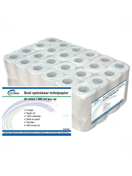 Wanneer een toilet minder gemakkelijk doorspoelt, of wanneer er daadwerkelijk sprake is van een (beginnende) verstopping raden wij aan om geen “normaal” toiletpapier te gebruiken. Stap dan over op het Toiletpapier Extra Oplossend Cellulose 2 laags 400 vel om de verstoppingsklachten niet te verergeren. Ander toiletpapier blijft een massa en lost minder gemakkelijk op of valt minder gemakkelijk uit elkaar.