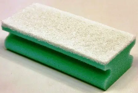 Let op: bij kwetsbare oppervlakken de schuurzijde van de spons eerst uitproberen op een onopvallende plek.