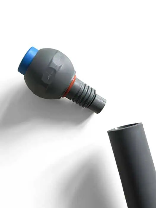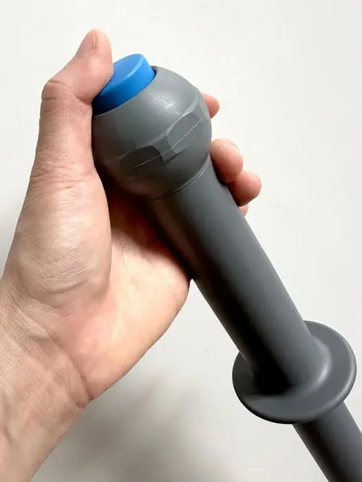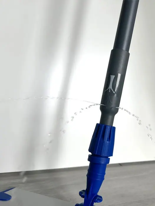 Aan de onderzijde van de steel treft u de doseergaten aan waar het vocht met elke druk op de knop naar buiten wordt gesproeid. De steel is geschikt voor vlakmopframes met een universele steelaansluiting.