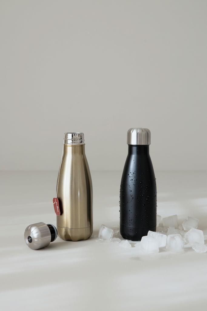 Een kleinere versie van de populaire waterfles van Sagaform. Bevat 26cl. De geavanceerde vacuümconstructie heeft dubbele stalen wanden en een koperen coating voor superieure isolatie zonder condensatie. De fles kan dranken tot 24 uur ijskoud of tot 12 uur warm houden.