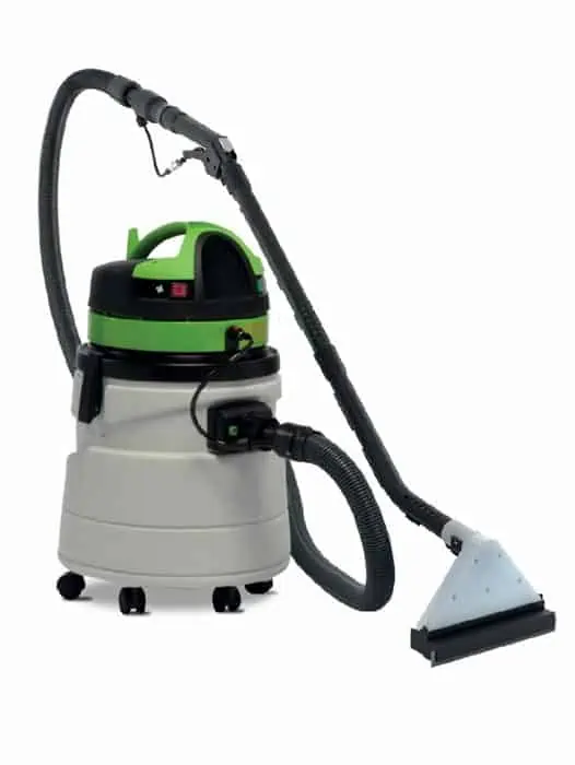 De Tapijt- en bekleding Reinigingsmachine GC1/35EXT is een compacte sproei-extractiemachine voor het reinigen van tapijt en bekleding. De ketel is vervaardigd uit slagvast Polyethyleen en staat op 4 stevige zwenkwielen. Hierdoor beweegt u hem soepel met u mee. De machine is uitgevoerd met 2-traps motoren en geeft hiermee een hoge zuigkracht om vervuiling en overtollig water uit bekleding te kunnen zuigen. Deze compacte machine is tevens voorzien van een 8,5 meter netsnoer welke u gemakkelijk opbergt aan de kabelhaak.