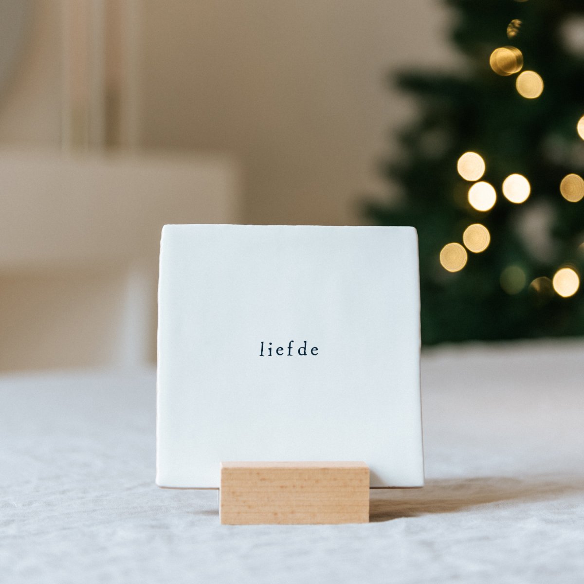 Deze mooie witte tegeltjes zijn verkrijgbaar in verschillende fijne teksten. Je ontvangt bij de tegels een katoenen zakje.