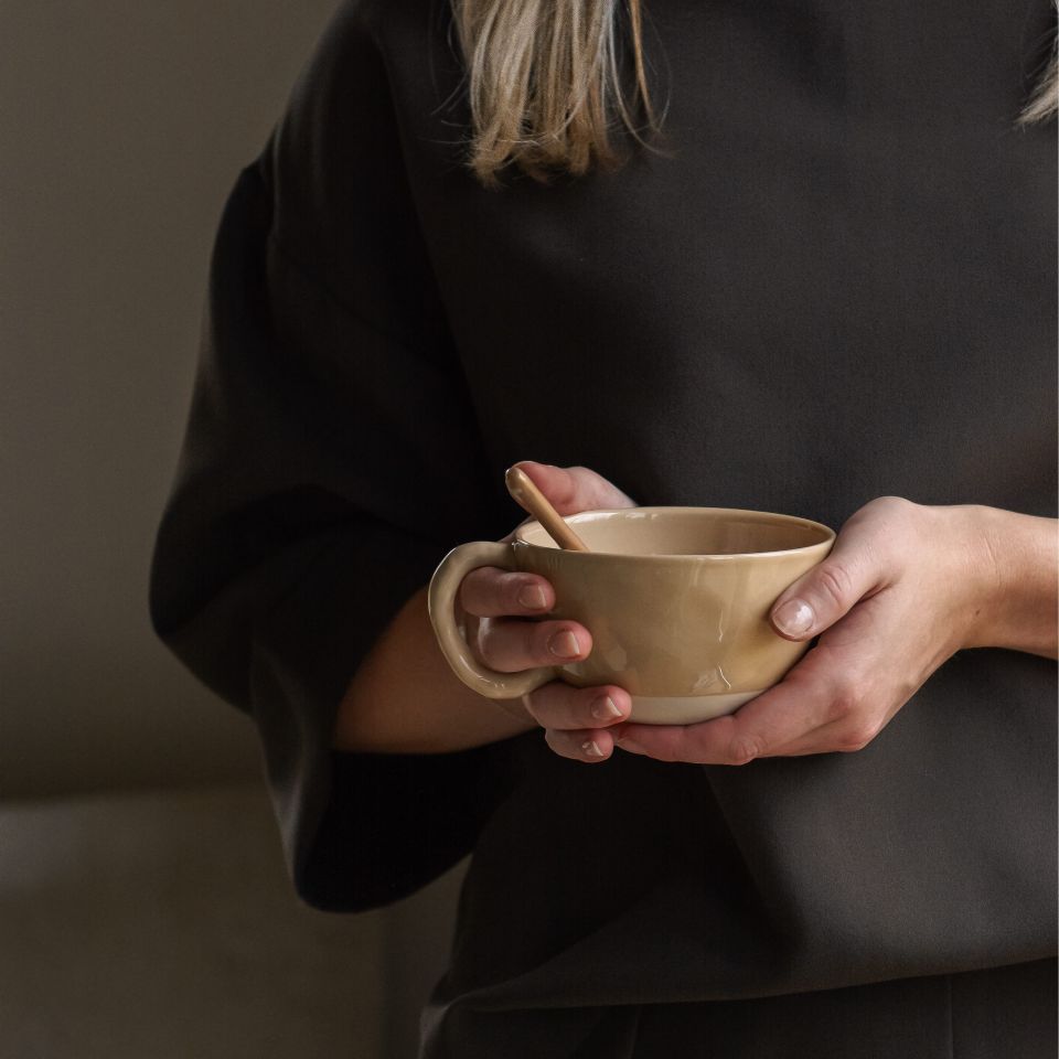 Een lekker schuimige cappuccino die je met twee handen vast wilt houden. Deze cappuccino kop is ervoor gemaakt. Met de hand. Of pak de kop aan het oor beet en drink er een hete chocomel uit. Met of zonder slagroom. Dat is ook genieten. De keramiek is hoge kwaliteit en op 1200 graden gebakken. Geschikt voor je vaatwasser, oven, diepvries en magnetron. Fair, klimaatpositief en plasticvrij verpakt.