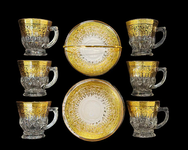 Breng luxe naar je theemomenten met deze elegante theeglazenset. Met een uniek design, goudkleurige accenten en bijpassende onderleggers is deze set perfect voor zowel dagelijks gebruik als speciale gelegenheden.