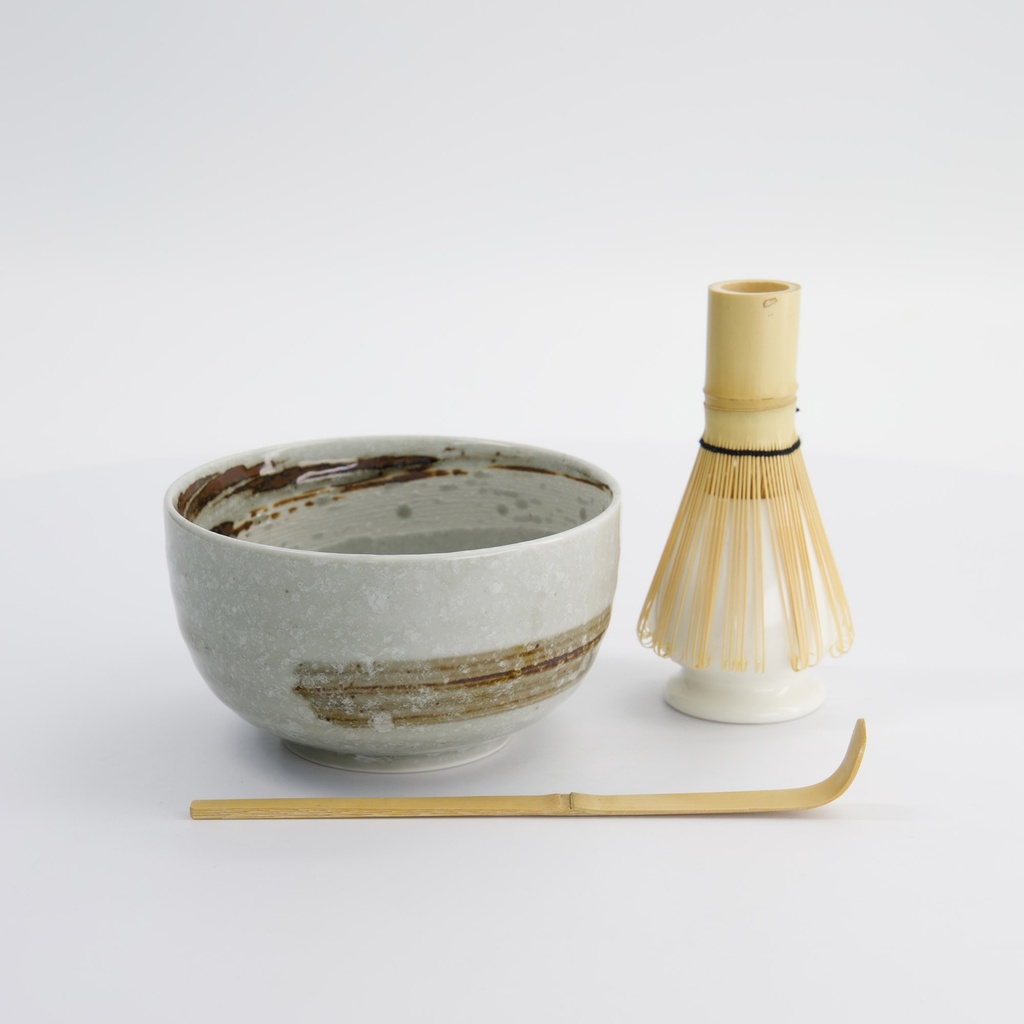 - Bamboo whisk + holder – voorkomt klontjes en zorgt voor een romige, luchtige textuur