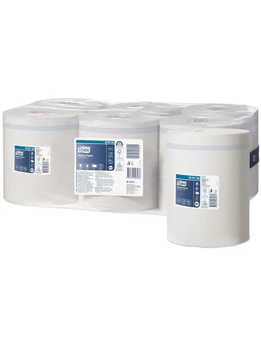 De Tork Wiping Plus Poetsrol is ontworpen voor gebruik in combinatie met Tork dispensers. Dit minimaliseert verspilling, beschermt het papier tegen stof en vuil, en zorgt voor een gecontroleerde uitgifte. Hierdoor blijft uw werkplek georganiseerd en hygiënisch.