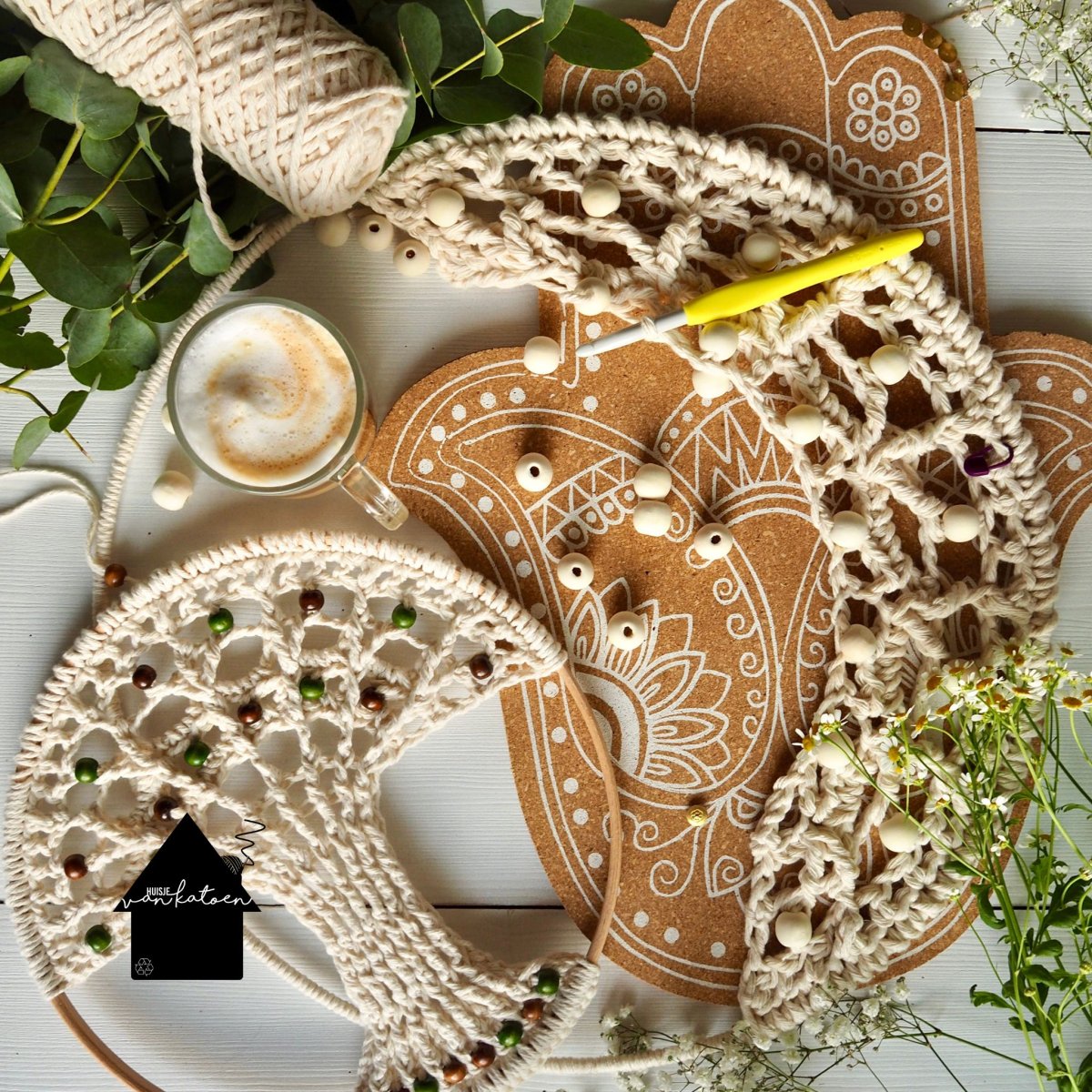 De foto’s zijn gemaakt met Barbante uit eerdere batches. Barbante is een gerecycled katoen en wordt niet geverfd, dus kleuren kunnen per batch verschillen én per beeldscherm anders overkomen. Tijdens het bestellen zie je altijd de actuele kleuren die op dat moment in ons assortiment zitten voor jouw project. Die opties zijn leidend (en het meest up to date ).