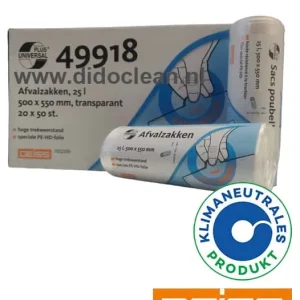 - U bestelt per doos van 20 rollen (=1.000 afvalzakken)