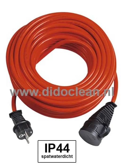 Verlengsnoer 10 meter rood IP44 voor zwaar gebruik. Spatwaterbestendig IP 44 met veiligheidsstekker en koppeling. Kabellengte 10 meter.