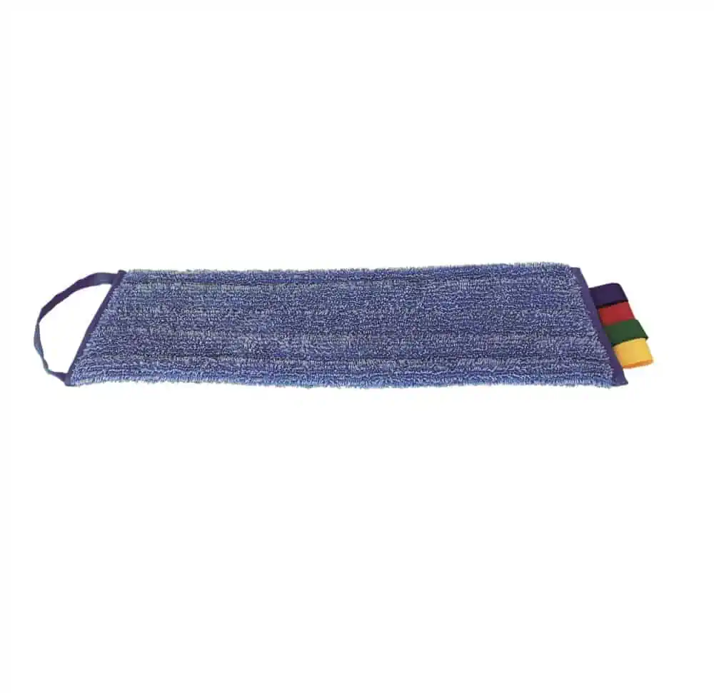 De microvezel vlakmop is vervaardigd uit de beste microvezels waardoor u kunt profiteren van een groot reinigingsoppervlak dat zelfs bij lage wrijvingsdruk zijn werk uitmuntend doet. De microvezel vlakmop is voorzien van een handige lus voor het eenvoudig verwijderen van het vlakmopframe. De microvezel vlakmop en het frame bevestigd u ook zeer gemakkelijk aan elkaar door het velcro systeem (klitteband). Leg de microvezel vlakmop op de grond, plaats uw vlakmop frame erop en u kunt aan de slag. De microvezelv vlakmop is voorzien van kleurlussen voor gebruik met kleurcodes.