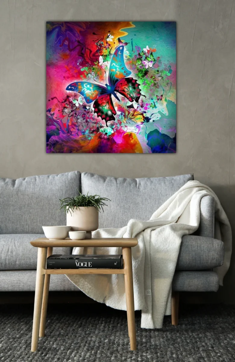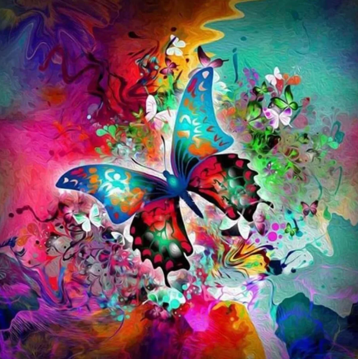 Deze diamond painting is een eyecatcher in elke ruimte. Door de vrolijke kleuren van deze vlinder en de achtergrond ziet iedereen jouw kunstwerk hangen.