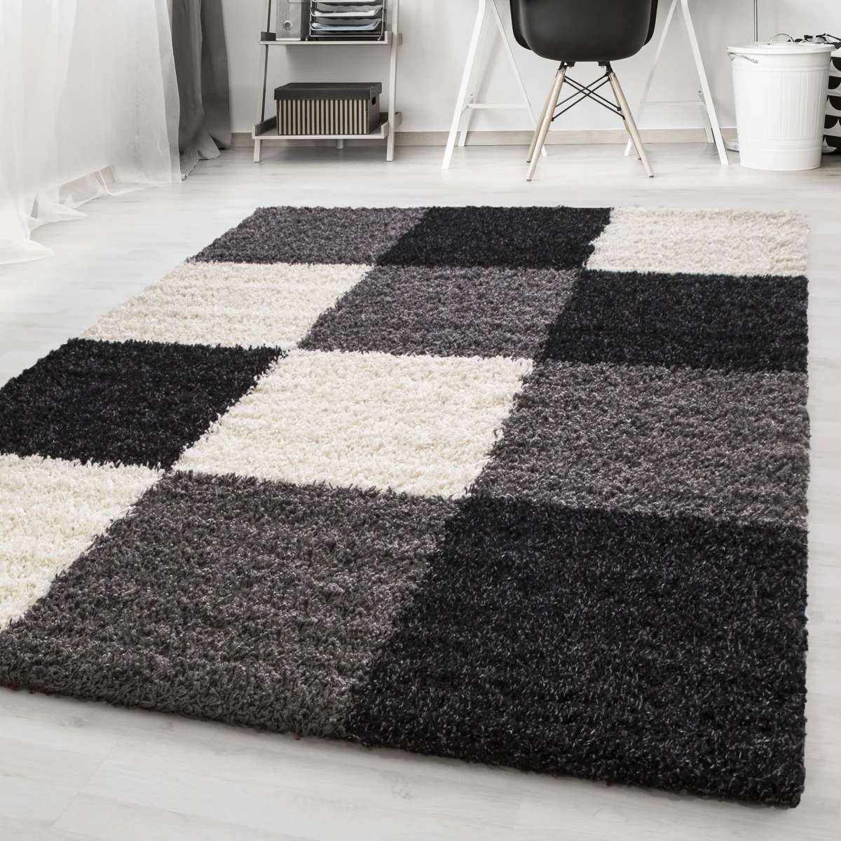 Add atmosphere, warmth and style to your interior with the LIFE SHAGGY rug in a modern checkered design. The combination of black, white and grey fits effortlessly into any interior, from sleek modern to industrial or classic.