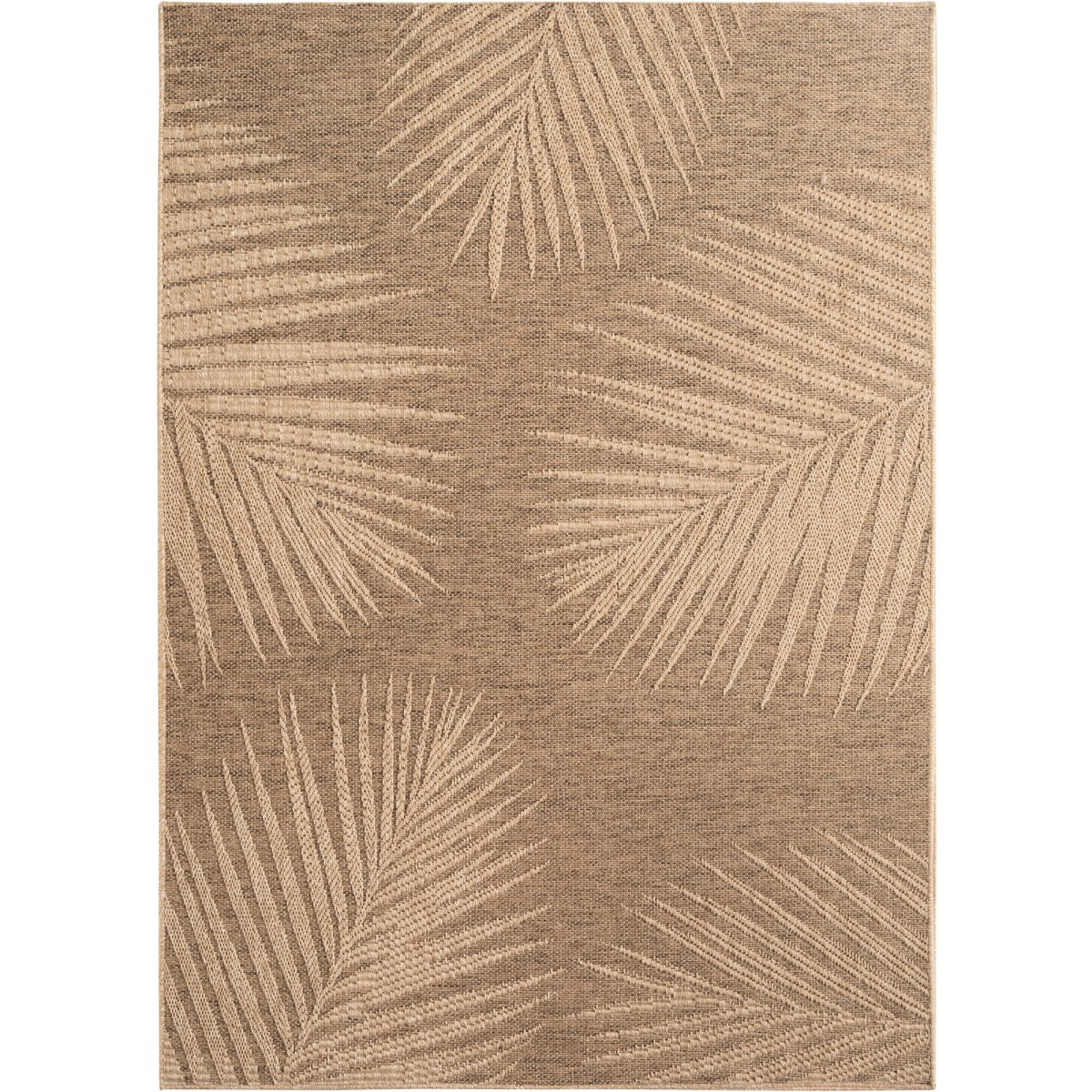 Dit stijlvolle vloerkleed uit de TIMBER collectie heeft een elegant palmblad design dat een natuurlijke en tropische sfeer toevoegt aan iedere ruimte. Dankzij de rustige beige tint en het verfijnde patroon past het kleed moeiteloos binnen verschillende interieur- en tuinstijlen. Het duurzame materiaal maakt het vloerkleed geschikt voor zowel binnen als buiten gebruik.