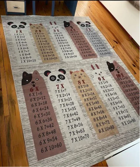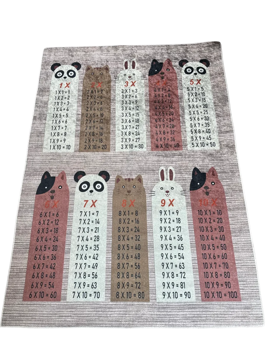 Dit wasbare kindertapijt met een tafels van 10 en dierenmotief is zowel educatief als speels, perfect voor de kinderkamer of speelruimte. Dankzij de antislip onderkant blijft het kleed stevig op zijn plek, en het wasmachinebestendige materiaal maakt het eenvoudig schoon te houden. De multicolor print zorgt voor een vrolijke en leerzame toevoeging aan de ruimte.