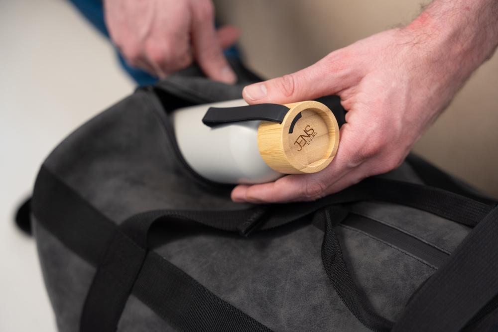 Mooie waterfles van gerecycled aluminium is handig om onderweg je dorst te lessen.