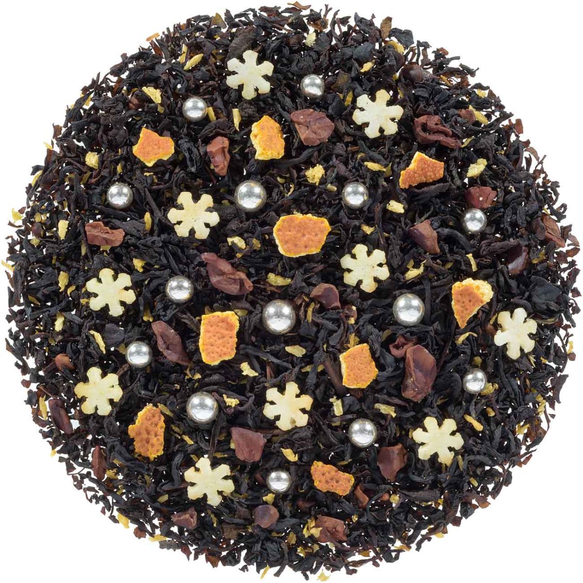 Ingrediënten: Zwarte thee, suikerparels (suiker, tarwemeel), zetmeel (tarwe, mais), cacaobonen, suikervlokken (suiker, rijstmeel, rijstolie), aardappelzetmeel, aroma, kokosvlokken, sinaasappelschil. Kan sporen van pinda’s bevatten!
