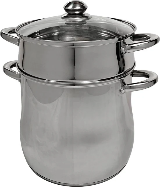 Deze hoogwaardige couscoussier van Eisenbach Professional is volledig vervaardigd uit duurzaam roestvrij staal en ontworpen voor optimaal kookgemak. Dankzij de royale inhoud van 16 liter bereid je moeiteloos grote porties couscous, groenten of gestoomde gerechten voor het hele gezin. De pan heeft een dikke, warmtegeleidende bodem met drie lagen, waardoor de warmte snel wordt verdeeld en langdurig wordt vastgehouden. Dit zorgt niet alleen voor efficient koken, maar ook voor behoud van smaak, vitamines en structuur. Het bovenste inzetdeel heeft fijne perforaties waardoor de stoom gelijkmatig circuleert en de couscous luchtig wordt zonder klonten. Met het transparante glazen deksel houd je het kookproces perfect in de gaten zonder warmte te verliezen. Deze couscouspan is geschikt voor alle warmtebronnen zoals gas, elektrisch, keramisch, halogeen en inductie. Een professionele en duurzame keuze voor wie authentieke gerechten wil bereiden met maximale controle en minimal verlies van voedingsstoffen.