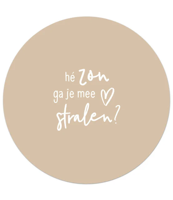 Geef je tuin of balkon een sfeervolle touch met deze zandkleurige tuincirkel met de tekst “Hé zon ga je me stralen?”. Een stijlvolle en weerbestendige wanddecoratie die zowel buiten als binnen prachtig tot zijn recht komt.