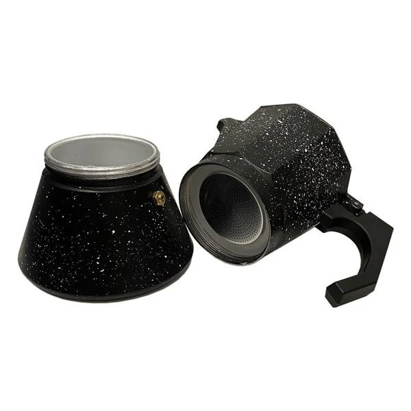Deze klassieke zwarte espressomaker is perfect voor het zetten van 9 kopjes espresso, ideaal voor koffieliefhebbers en gezelschappen. Dankzij het hittebestendige en duurzame materiaal is deze percolator geschikt voor alle warmtebronnen, inclusief inductie. Met een stijlvol zwart design en een traditioneel percolatorsysteem geniet je van een rijke en volle espressosmaak.